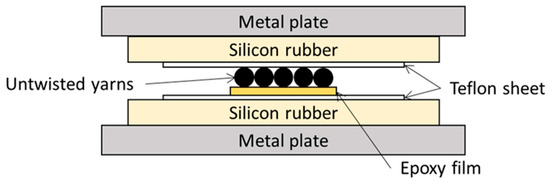 Unidirectional MWNT reinforced epoxy composites were fabricated as shown in Figure 3. Five untwisted yarns were closely placed on an epoxy adhesive film and hot-pressed.