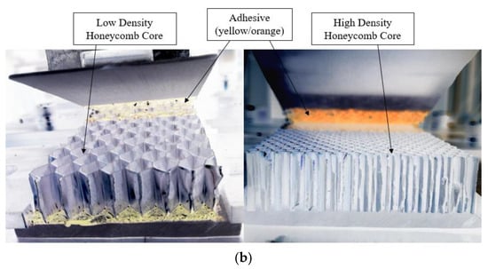 The employability of sandwich structures has shown a growing trend in various industries, including aerospace, renewable energy, automotive, marine, etc. [1,2]. Based on the intended applications, lightweight core materials of various densities and topologies are used. Due to their high specific strength and stiffness, sandwich composites are used in critical high-value components in aircrafts, such as the wing leading edge, aileron balance panels, engine nacelle components, thrust reversers, rudder, radomes, and engine impact liners.