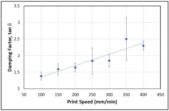 Damping factor (tan δ) data vs. print speed.