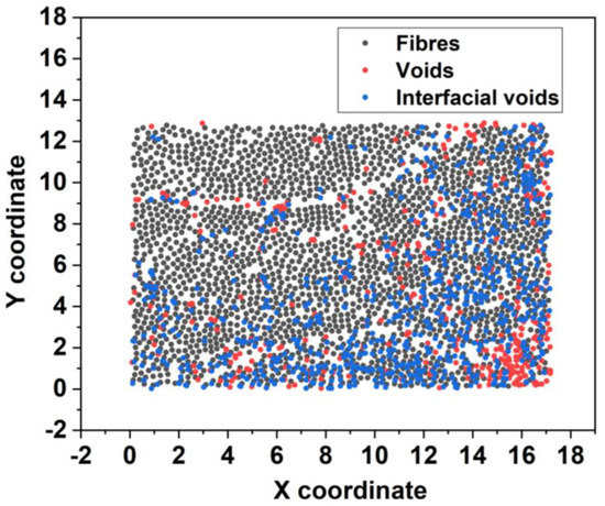 - The coordinates of a fibre were compared to the locations of the voids for a sample using Equation (2).where: