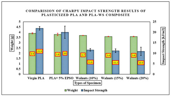 The Charpy impact test was carried out following the DIN ISO 179 standard, with a velocity of 2.9 m/s and a hammer weight of 0.9510 kg, and the Ray-Ran Advanced Universal Pendulum Impact Tester was used as a testing device.