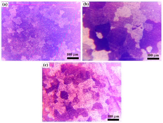 Optical microstructures of (a) SP1, (b) SP2 and (c) SP3.