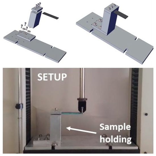 This configuration allowed for reaching high displacements of the sample end, with lower values of maximum strains in comparison with other bending configurations such as dual-cantilever or 3 point. Samples were clamped from one end, along a clamping length of 20 mm, whereas a pushing rod deformed the opposite end. A span length of 80 mm resulted. The pushing rod was connected with a universal material testing machine (MTS Insight 5). In comparison with the 3 point bending configuration, the same maximum displacement was obtained with 25% of the maximum strain, but this maximum occurred at the clamping end instead of the sample middle-length. Tests were carried out up to a maximum displacement of 20 mm, depending on the laminate structure.