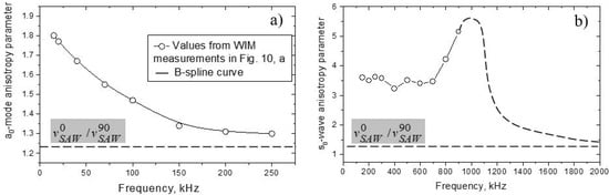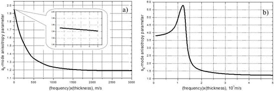 Similar calculations of the anisotropy dispersion carried out for the modes in UD-CFRP are shown in Figure 2b. The values of are substantially higher than those for mode.
