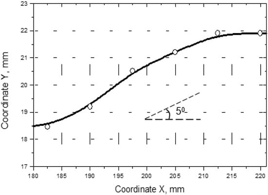 where Y0 is the initial fibre coordinate and ∆x is the distance between the measurement points.