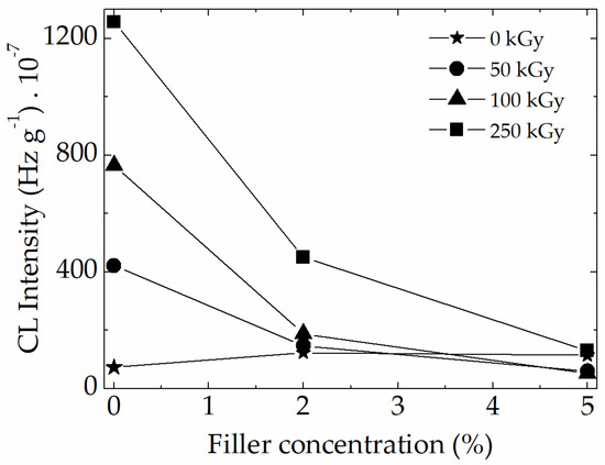 CL intensities measured on γ-irradiated epoxy nanocomposites [150].