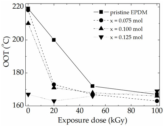 Modification in OOT values for the radiation oxidation of EPDM modifies with Pb(Zr0.65-xCexTi0.35) [132].