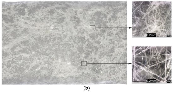 The final FFF-printed core of the sandwich structures has a length l = 190 mm, width wth = 90 mm and height h = 6 mm. The FFF printing process of the core of the hierarchy level is displayed in Figure 2a. The composite skins glued to the FFF-printed hierarchical cores are portrayed in Figure 2a. In Figure 2b, the skins have been examined with a digital optical microscope Dino-Lite AD7013MZT (AnMo Electronics, Hsinchu, Taiwan) and software DinoLite 2.0. Finally, two different regions have been magnified in Figure 2b in order to examine the fiberglass dispersion. This research has been focused on studying the mechanical properties of honeycomb sandwich structures considering the different architecture of each hierarchy, along with the contribution of the external composite material skins.