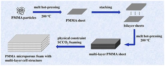 - Zhou, D.; Xiong, Y.; Yuan, H.; Luo, G.; Zhang, J.; Shen, Q.; Zhang, L. Synthesis and compressive behaviors of PMMA microporous foam with multi-layer cell structure. Compos. Part B Eng. 2019, 165, 272–278. [Google Scholar] [CrossRef]