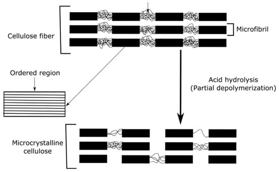 Schematic illustration of the microcrystalline cellulose separation during acid hydrolysis (reproduced with permission from []).