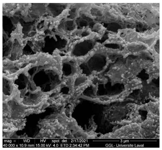 Lignocellulosic fillers are attracting considerable attention as alternative reinforcements in rubber composites due to their renewability, biodegradability, availability, high mechanical properties, low density and low cost [,]. For example, the annual production of mill wood residues in Canada for 2004 was estimated at 21.2 million bone-dry tons (BDt), of which 87% was used in applications such as pulp and paper, wood fuels, animal bedding, pellets, etc. However, the other 13% (2.7 million BDt) was discarded []. This represents a substantial source of low-cost fillers to be used in composite applications. However, lignocellulosic materials are generally classified as non-reinforcing fillers for rubber composites due to the poor compatibility between hydrophobic rubber molecules and hydrophilic fillers. Therefore, the properties of rubber composites filled with pristine lignocellulosic fillers are expected to be lower than those filled with CB. Consequently, some modifications must be applied to the lignocellulosic fillers to improve their compatibility with the rubber matrix []. Nevertheless, these modifications require additional costs and could also decrease the biodegradability of natural fillers. Moreover, additional steps are necessary for the fillers’ purification and their mixing with a rubber matrix, especially for nanoscale fillers.