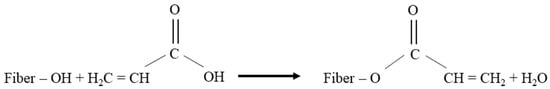 Potassium permanganate (Scheme 3) and acrylic acid (Scheme 4) are two other treatments for natural fibers. Dhanalakshmi et al. [] compared the effect of untreated, alkali-treated, potassium permanganate–treated, benzoyl chloride–treated and acrylic acid–treated areca fibers on the mechanical properties of NR composites. The results showed that the highest value was obtained when 60% of acrylic acid–treated fibers was used.