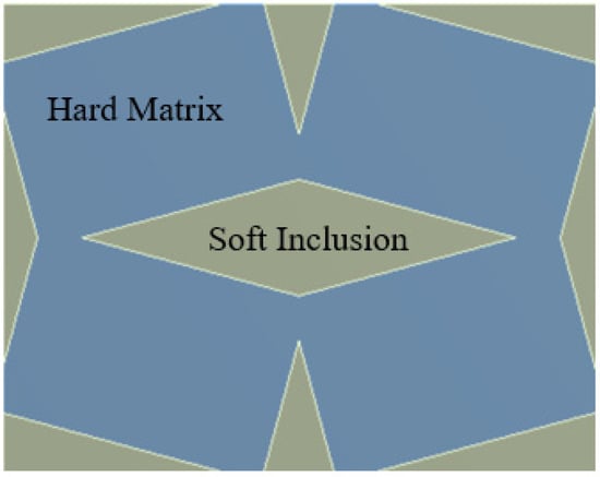 Similarly, a plate comprises a hard matrix, and soft inclusions can offer an NPR effect. A unit cell that includes a hard matrix and soft diamond shape inclusions is shown in Figure 2. Both matrix and inclusions are isotropic elastic materials.