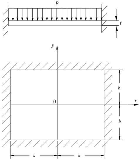 - İmrak, C.E.; Gerdemeli, İ. An Exact Solution for the Deflection of a Clamped Rectangular Plate Under Uniform load. Appl. Math. Sci. 2007, 1, 2129–2137. [Google Scholar]