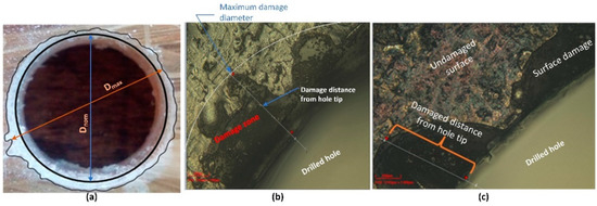 The assessment of delamination and surface roughness is necessary for the correction and improvement of the performance of parts during assembly operations [23]. Profile projections, microscopy, and image processing using a scanner are the most readily available and economically feasible techniques for measuring the diameter and radius of drilled holes, which can be used to calculate delamination [1,4]. In the study reported in [27], analysis of variance (ANOVA) was used to evaluate the influence of the factors over the response variable; that is, they used ANOVA to determine how different factors affected the response variable to different degrees.