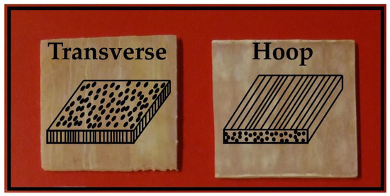 GFRP plate specimen fiber orientations: (left) transverse and (right) hoop orientations.