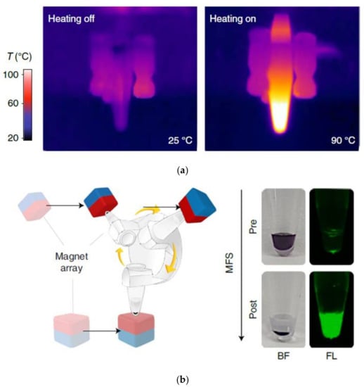 - Cheong, J.; Yu, H.; Lee, C.Y.; Lee, J.U.; Choi, H.J.; Lee, J.H.; Lee, H.; Cheon, J. Fast detection of SARS-CoV-2 RNA via the integration of plasmonic thermocycling and fluorescence detection in a portable device. Nat. Biomed. Eng. 2020, 4, 1159–1167. [Google Scholar] [CrossRef]