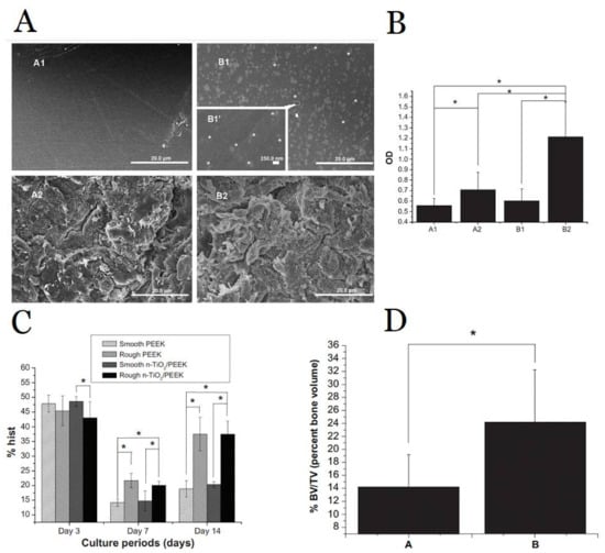- Wang, S.; Li, J.; Zhou, Z.; Zhou, S.; Hu, Z. Micro-/Nano-Scales Direct Cell Behavior on Biomaterial Surfaces. Molecules 2018, 24, 75. [Google Scholar] [CrossRef]