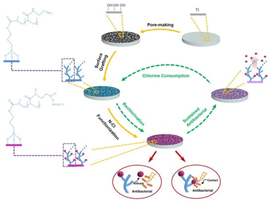 - Chouirfa, H.; Bouloussa, H.; Migonney, V.; Falentin-Daudre, C. Review of titanium surface modification techniques and coatings for antibacterial applications. Acta Biomater. 2019, 83, 37–54. [Google Scholar] [CrossRef] [PubMed]