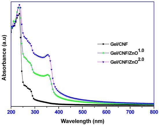 UV-vis absorption profile of the gelatin/CNF-based films.