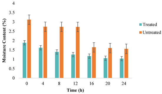 Figure 2. Moisture content of treated and untreated coffee husk fiber.