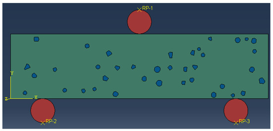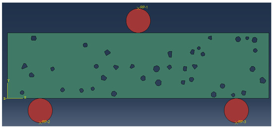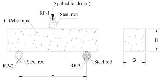 Figure 11 presents the schematic diagram of the CRM specimen for modeling the three-point flexural test.