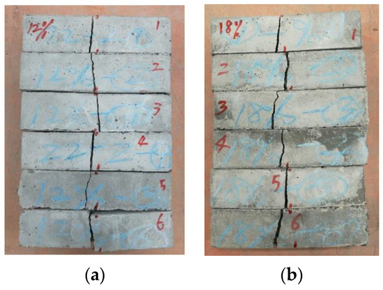 Failure modes of CRM specimens. (a) Sample with 12% rubber content. (b) Sample with 18% rubber content.