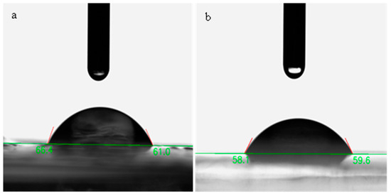 The water contact angle (WCA) was measured using a contact angle analyzer (Phoneix 150, Republic of Korea): the sample size was 3 cm × 6 cm, the test liquid was water, the drop size was 5 μL, and the equilibrium time was 20 s.