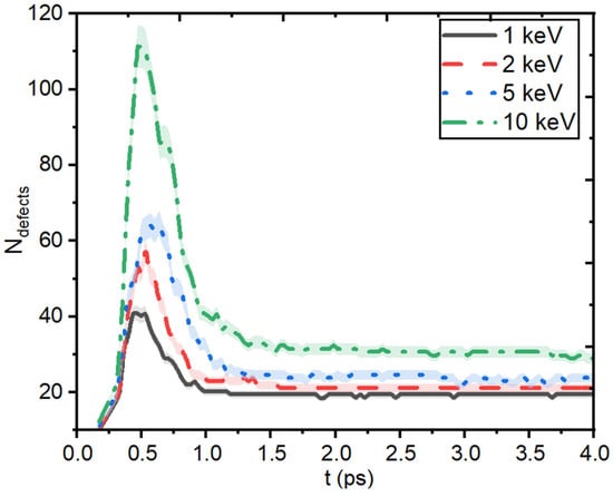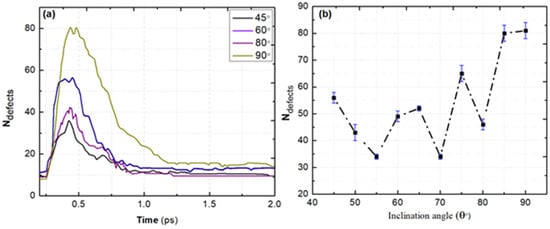 3.3. Effect of Displacement Cascades on Energy and Direction of PKA