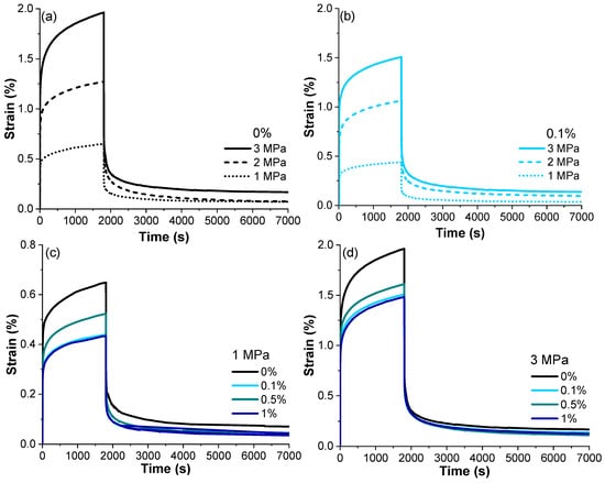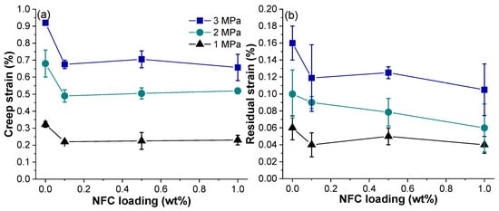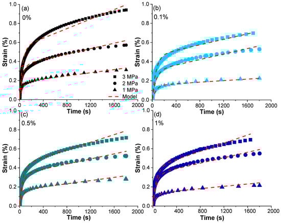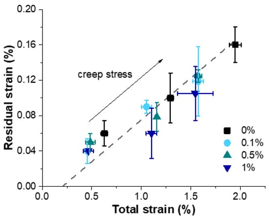 - Starkova, O.; Aniskevich, K.; Sevcenko, J.; Bulderberga, O.; Aniskevich, A. Relationship between the residual and total strain from creep-recovery tests of polypropylene/multiwall carbon nanotube composites. J. Appl. Polym. Sci. 2020, 138, 49957. [Google Scholar] [CrossRef]