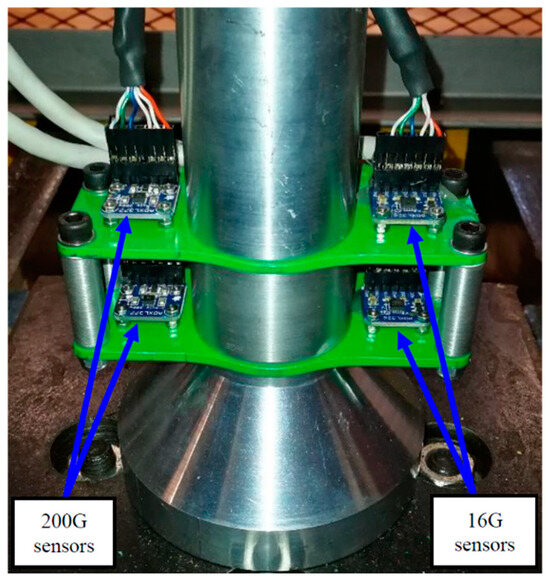 Four accelerometers are also used to record the impact of the drop sled on the laminate panels. Two 16G sensors (Analog Devices ADXL326) and two 200G (Analog Devices ADXL 377) sensors are used for redundancy. These can be seen in Figure 11.
