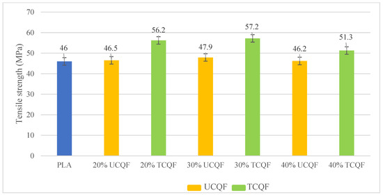 Tensile strength of PLA, untreated and treated “Cissus quadrangularis” fiber.