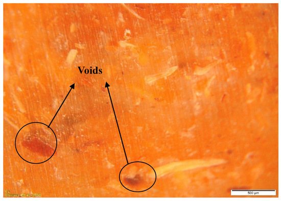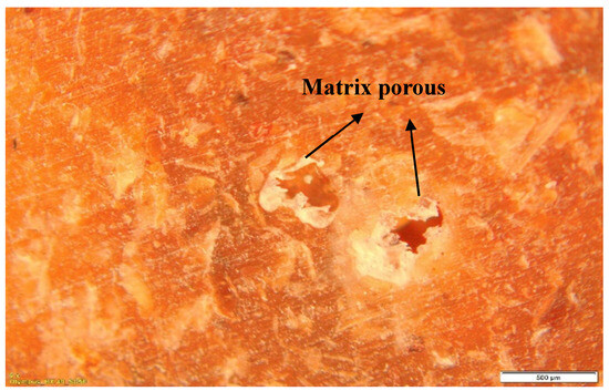 In microscopy, images are generated at a scale of 500 micrometers. As seen in the photographs, we can detect some voids, which are simply empty areas or gaps within a material. Void formation can significantly impact a material’s mechanical properties and structural integrity. In microscope photographs, voids may appear as dark or empty areas inside the material’s structure. The term “porosity” refers to a substance’s presence of pores. We can also see some porous areas in the matrix of the material. The structure of a substance can connect or divide tiny openings or spaces known as pores. In microscope photographs of porous materials, a network of interconnected spaces or pores may be visible.