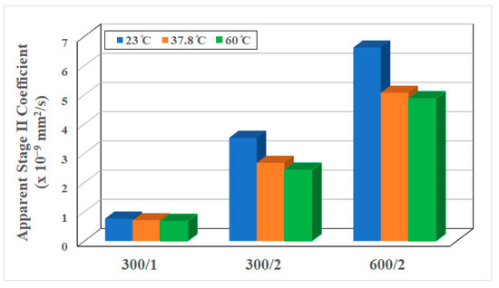 Apparent Stage II coefficients as a function of composite type and temperature of immersion.