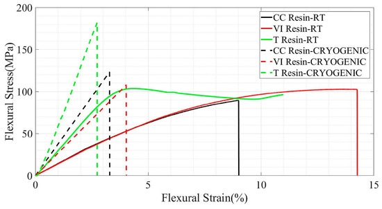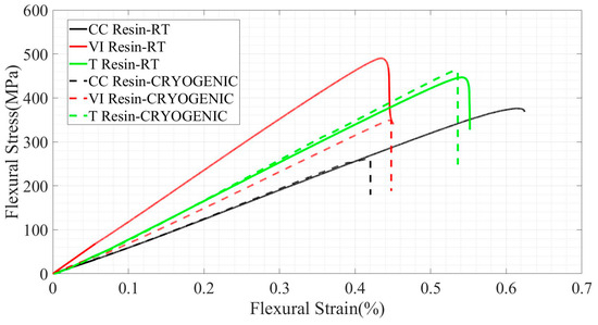 - The three-point bending tests on the neat epoxy specimens demonstrated that cryogenic temperatures led to a decrease in the elongation and an increase in the strength and stiffness due to embrittlement. It became apparent that the neat epoxy’s performance may not accurately reflect the cryogenic performance of the composites due to the dominant influence of fiber/matrix interactions on the damage behavior. Consequently, experimental efforts focusing on single-fiber tow/resin interactions may be favored.