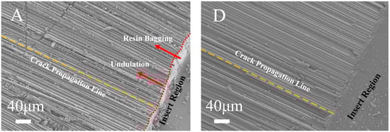 4.2. Crack Propagation Surfaces and Resin Morphologies