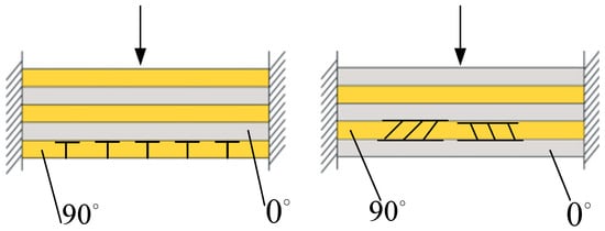 - Takeda, N.; Ogihara, S. Initiation and Growth of Delamination from the Tips of Transverse Cracks in CFRP Cross-Ply Laminates. Compos. Sci. Technol. 1994, 52, 309–318. [Google Scholar] [CrossRef]