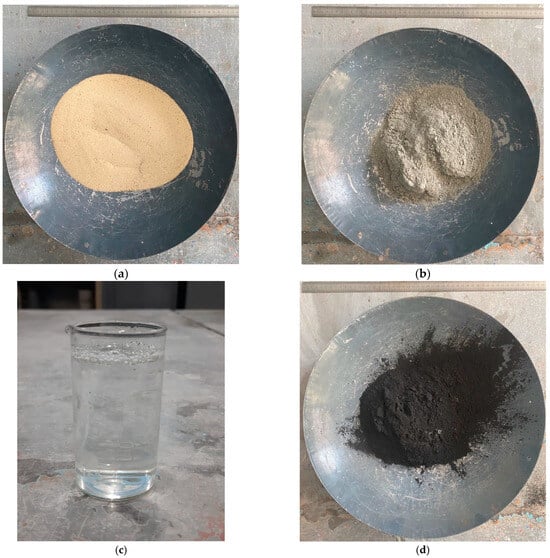The photographs of materials used as raw materials for the production of foam concrete are presented in Figure 3.