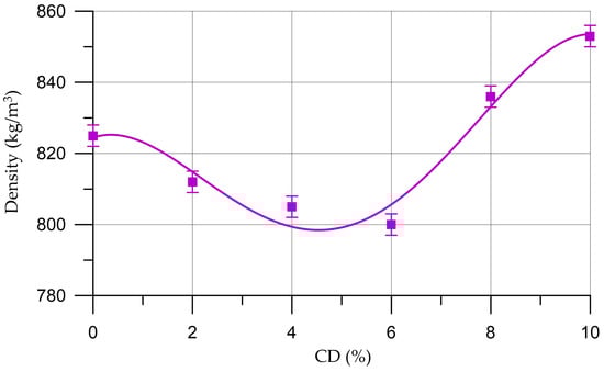 Changes in the density of foam concrete at different CD dosages.