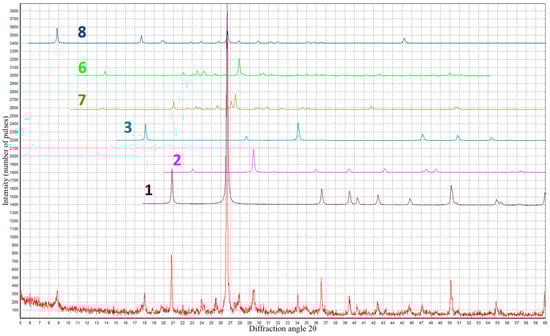 X-ray diffraction analysis of the concrete structure was carried out using an ARLX’TRA diffractometer. The characteristic radiation of the copper anode was used (wavelengths CuKα11.5406 Å, CuKα21.5444 Å). The identification of serpentinite phases and minor minerals was carried out using the PDF-2 X-ray database.