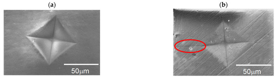 Hardness testing points for (a) Micro Vickers hardness test, and (b) Nanoindentation test.