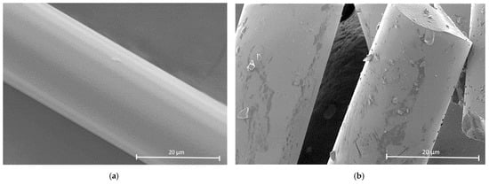 Analysis of the PCS sample microstructure after TMA shows clearly visible insular buildups on the fiber surface (Figure 8), while in the initial state the fiber surface was free of them.