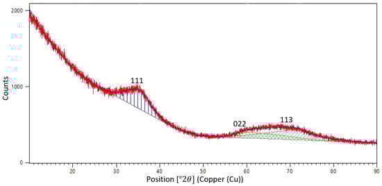 Diffraction pattern of the organomorphic SiC-preform (wide peak analysis was performed using the specialized HighScore Plus software for phase analysis).