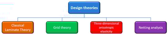Several integrated characteristics, including progressive failure qualities, burst pressure, and fatigue lifetime, are incorporated into the design of a composite vessel. Creating a composite vessel that combines high reliability with practicality is challenging from the outset of the design process. From a micromechanics point of view, composite failure is complicated, including matrix cracking, fiber/matrix debonding, delamination, fiber rupture, and interactions between these modes. Optimization can be used to make composite vessels lighter, stronger, and more reliable by designing the orientations and ply thicknesses of the wound fibers. Classical laminate theory (CLT), thick cylinder theory, or netting analysis [42] can be used to determine the preliminary sizes of the composite layup for hydrogen tanks (Figure 7). CLT is used to evaluate each layer’s layup sequence and thickness. Some researchers have used the netting analysis [62], which uses the principle of static equilibrium and assumes that all fibers are loaded in tension and do not have any shearing or bending stresses. According to grid theory, the basic assumptions are that: (1) only the longitudinal carbon fiber bear the pressure, and (2) the effects of wound patterns are neglected. Grid theory can calculate each composite layer’s thickness and the longitudinal in situ fiber strength. The burst pressure of the composite vessel inversely determines the strength value. The analytical method for studying the mechanical response of thick-walled composite pipes subjected to internal pressure was proposed by Bouhafs et al. (2012) [63].
