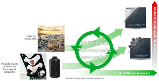 - Bernatas, R.; Dagreou, S.; Despax-Ferreres, A.; Barasinski, A. Recycling of fiber reinforced composites with a focus on thermoplastic composites. Clean. Eng. Technol. 2021, 5, 100272. [Google Scholar] [CrossRef]