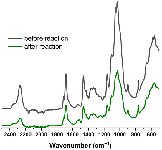 Figure 7. FTIR spectra before and after the reaction of A-CNF/D376N.
