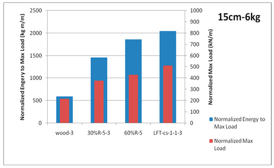 Two parameters, namely—Normalized Maximum Load and Normalized Energy to Maximum Load—were recorded for each specimen, a typical load-time and energy-time curve as shown in Figure 16 (right). The maximum load is the load the sample can bear before failure occurs. The energy to maximum load is the energy that the sample can absorb before failure.