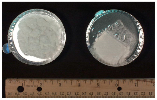 Scrap edge trim PP-GF material in ribbon form or consolidated laminates were shredded to pellet lengths of 38 mm (0.75″) using sieve screens in an industrial counter rotating blades shredder at Jordan Reduction Solutions, Birmingham, AL, USA [14], see Figure 1. The PP-GF scrap was processed in four weight percentages, namely 100%, 83%, 66%, and 50% recyclate by simple blending with neat PP to correspond to 60%, 50%, 40%, and 30% fiber weight fraction composite, respectively.