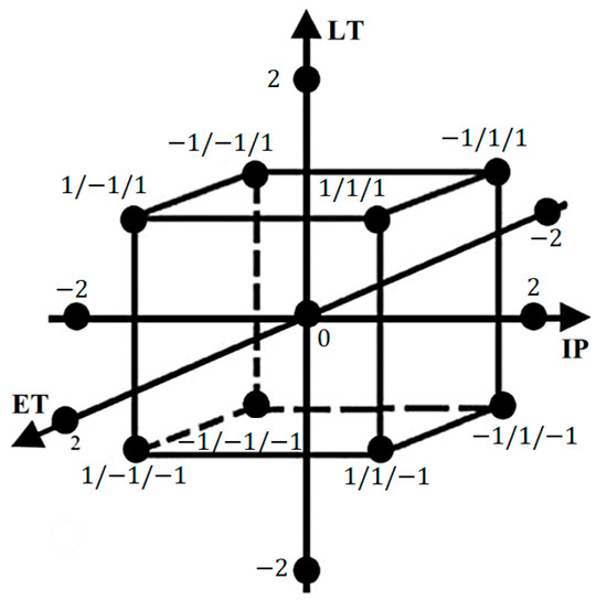 Levels of Central Composite Design for LT, ET, and IP (−2 to +2).