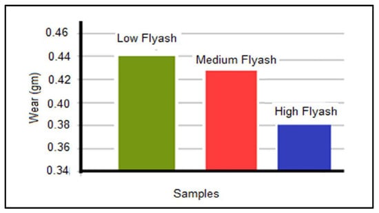 Variation of wear for low, medium, and high-content fly ash specimens [27].